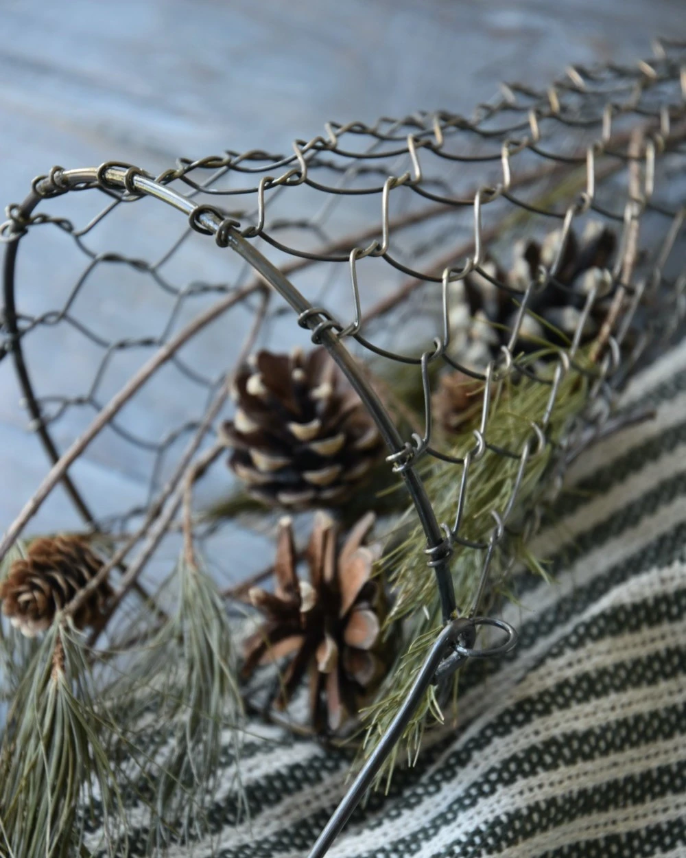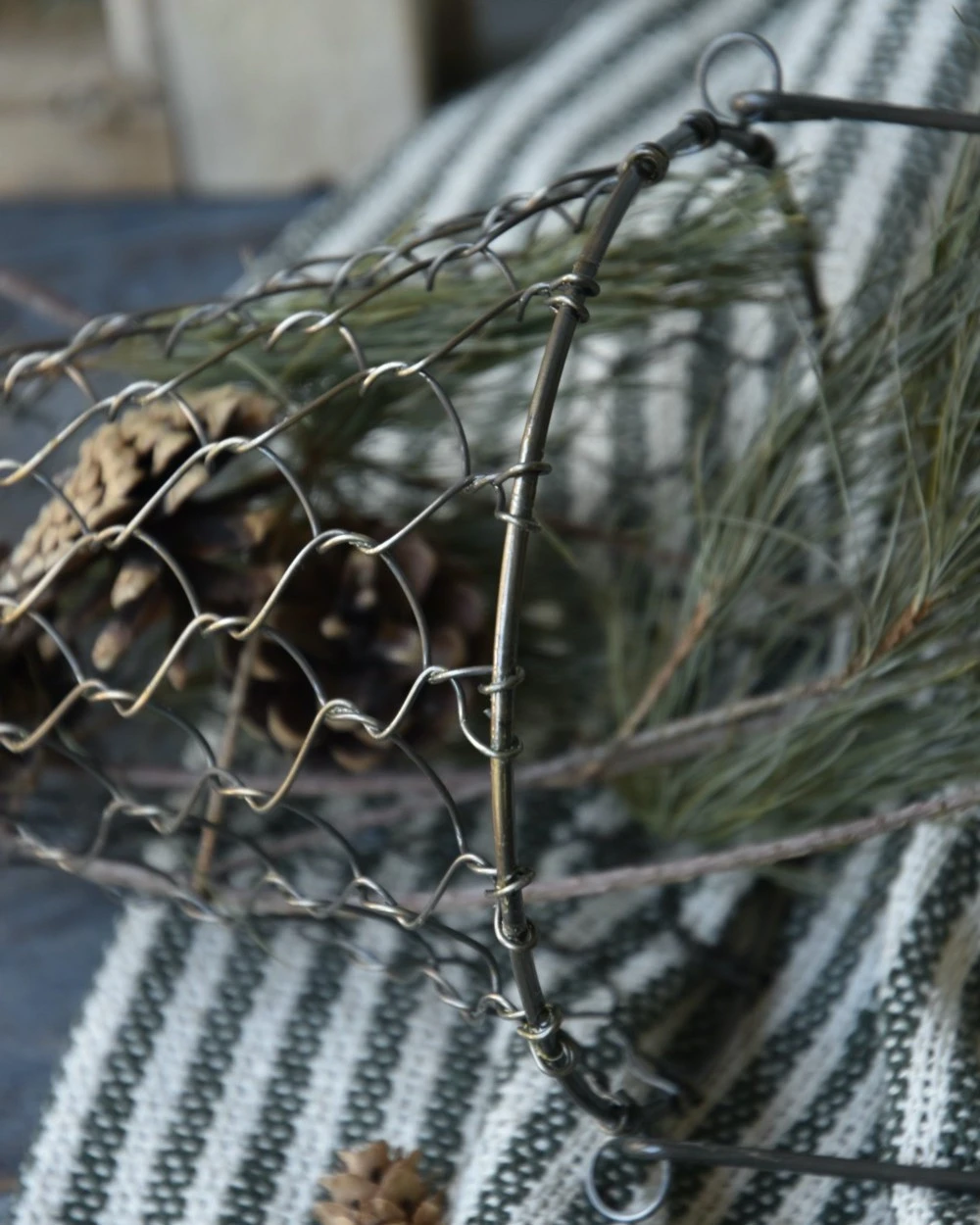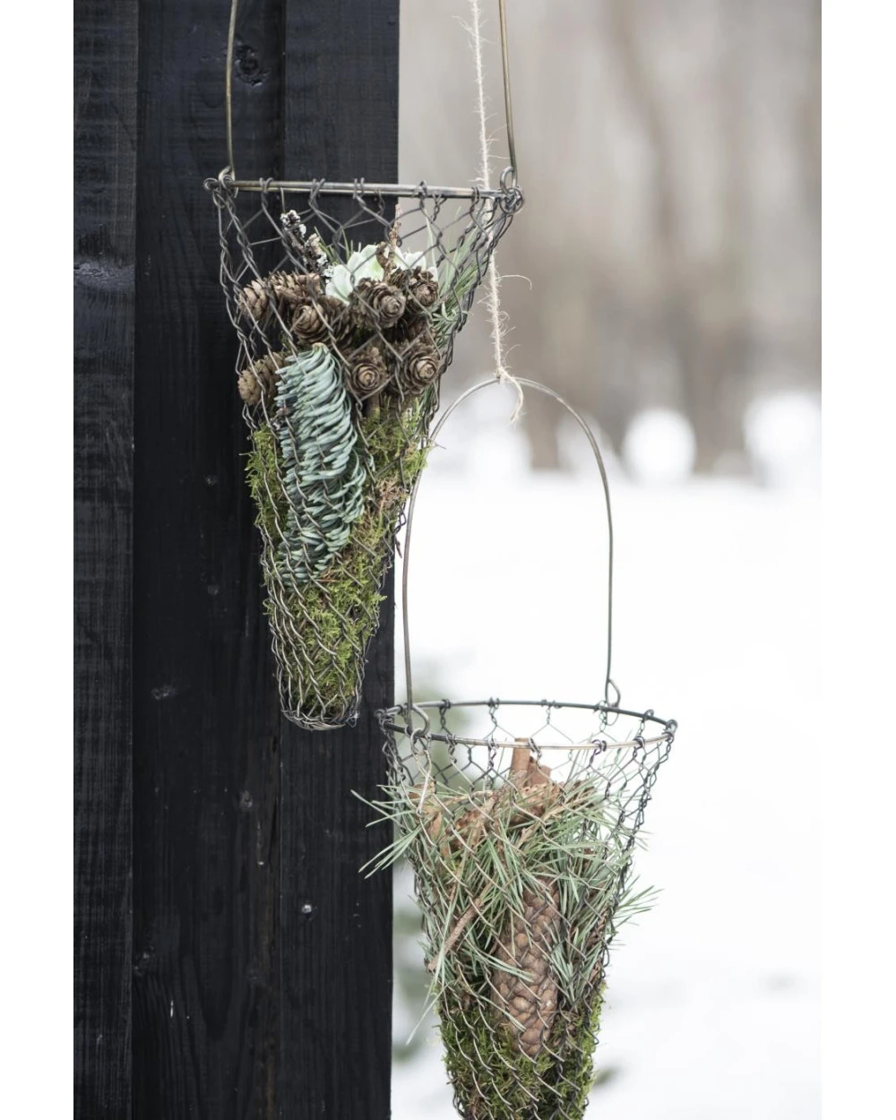 Draadmand kegel antiek goud met lang hengsel, IB Laursen. Deze leuke mand van metaal draad is in een antiek gouden kleur. De mand heeft een kegel vorm met een groot lang hengsel, waarmee u hem eventueel kunt ophangen. De mand is liggend ook erg leuk waarbij u kunt kiezen om het hengsel op de mand of boven de mand te plaatsen. De mand te vullen alsof hij leegloop (zoals een mand des overvloeds) vullen met dennenappels, groen, lichtjes, gedroogde kruiden, …… Aan de schoorsteen mantel, het rekje in de keuken, op tafel of de aanrecht… Oneindig veel mogelijkheden met deze mand dus.Â
