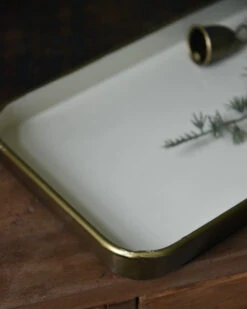 Emaille vaas, IB Laursen per stuk. Deze leuk pot/vaas is van een mooie zware kwaliteit emaille gemaakt. De pot is wit met een zwart randje aan de bovenkant. De vaas loopt iets taps naar binnen en heeft net onder de rand een verdiepte rand. U kunt de pot bv als vaas gebruiken met (droog)bloemen of zoals op de foto met kunst takken van IB Laursen.