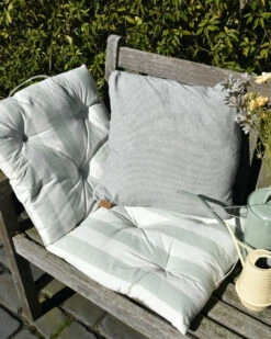 Matras Kussen Breed Gestreept In Gebroken Wit En Zacht Groen, IB Laursen