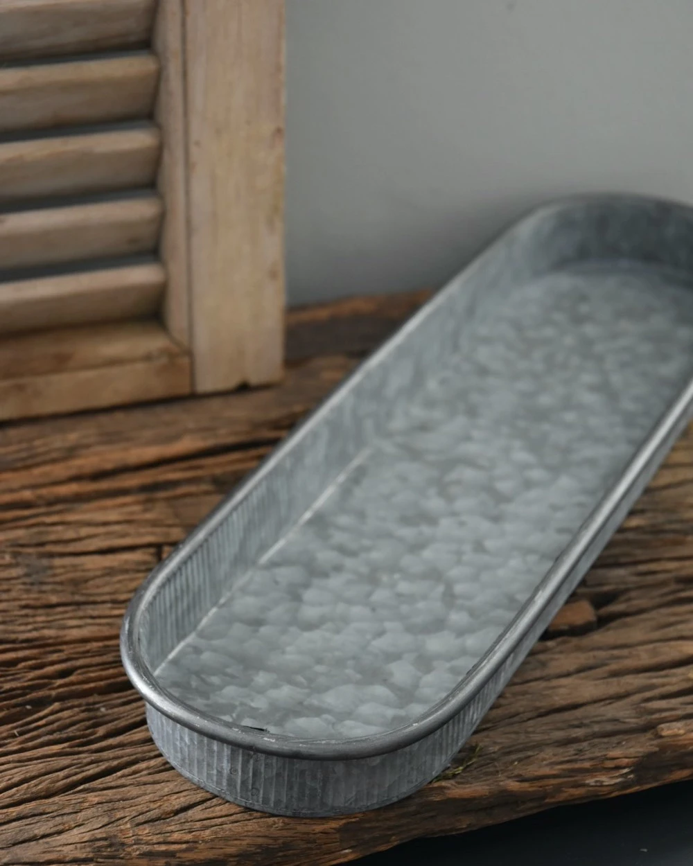 Ovaal dienblad met fijne schulp rand groot, IB Laursen. Dit lange decoratie bord is van zink gemaakt en heeft een recht opstaande fijne schulp rand. U kunt hiermee naar wens op alle manieren mee blijven decoreren.