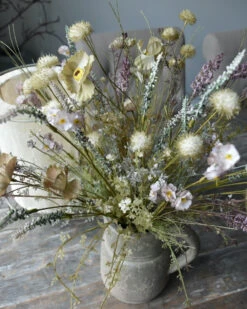 Veldboeket In Pastel Groenen, Lila, Paars En Taupe, ‘zijdebloemen’